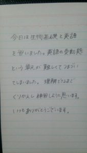 07月15日 M.Hさん(17) 今日は生物基礎と英語を習いました。 英語の受動態という単元が難しくてつまづいてしまいました。 理解できるまでくりかえし練習しようと思います。 いつもありがとうございます。 高卒認定&大学受験 高認塾 福岡 https://www.kounin-jyuku.com/ 092-711-0002 福岡市中央区渡辺通5-23-2 2015/07/15 23:30今日の一言 Tweet