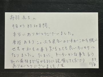 9月から約2か月間、本当にありがとうございました。