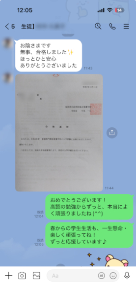 福岡私設病院協会看護専門学校の一般/社会人二期を受験していた塾生さんから、合格の連絡がありました。